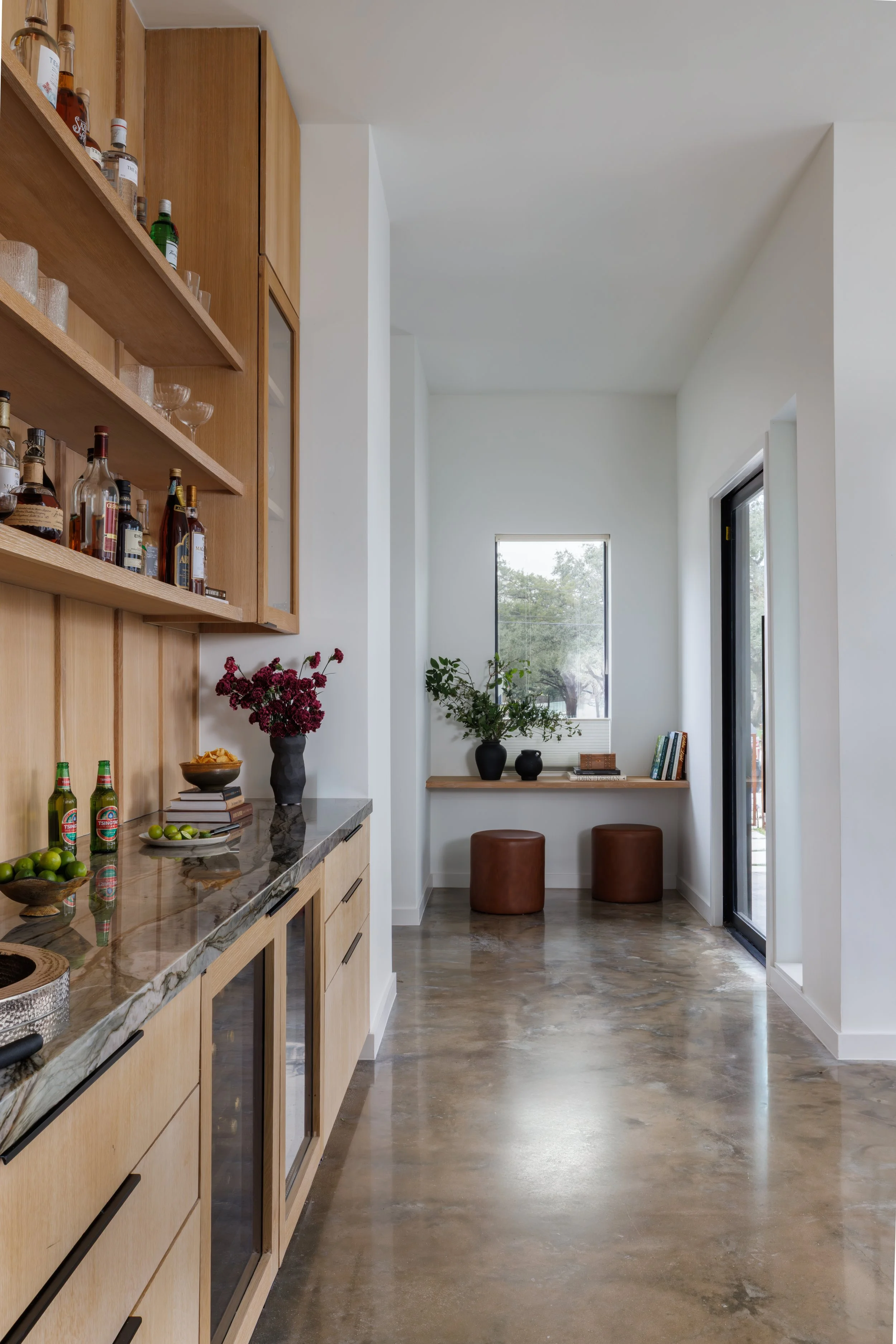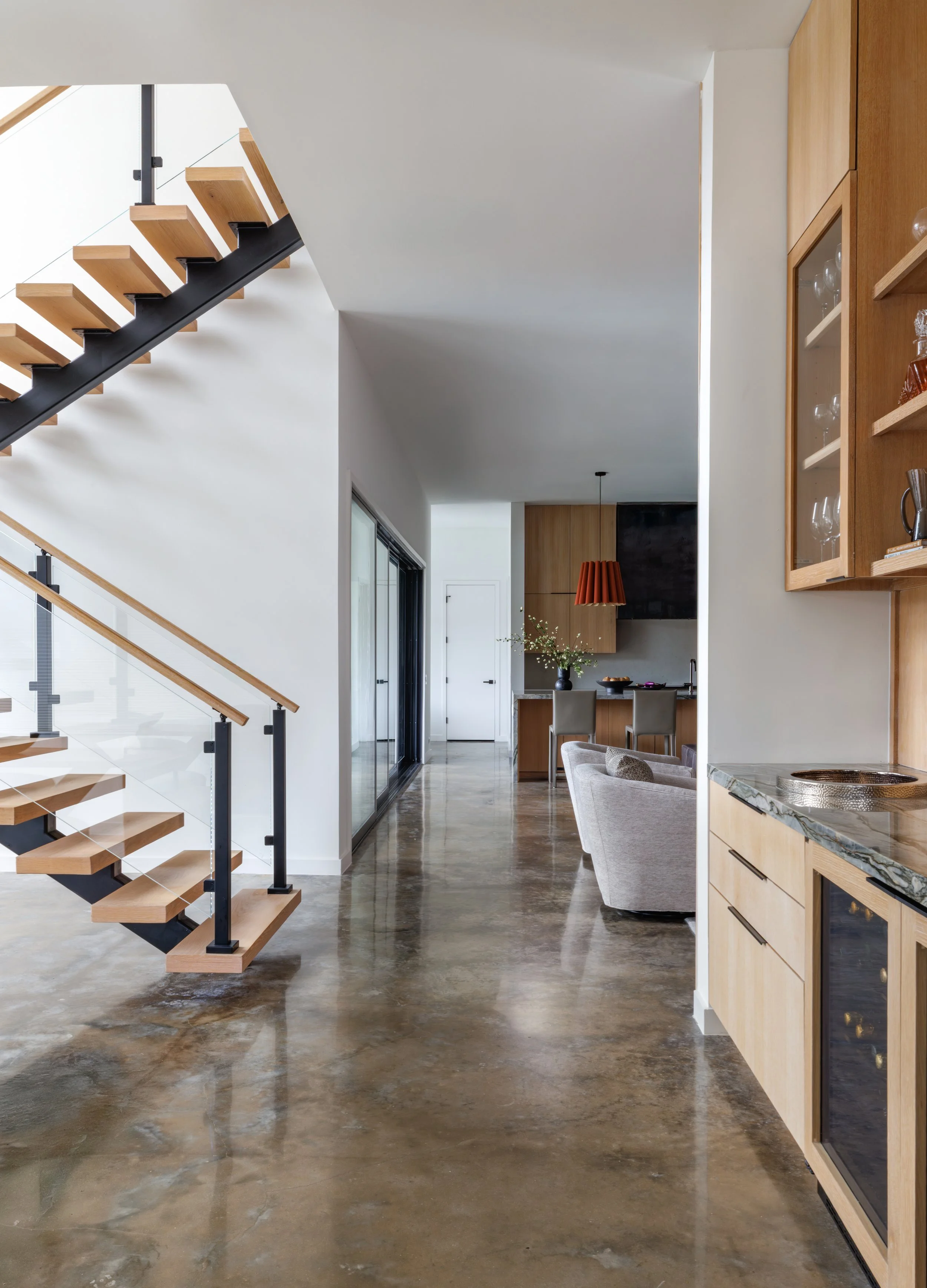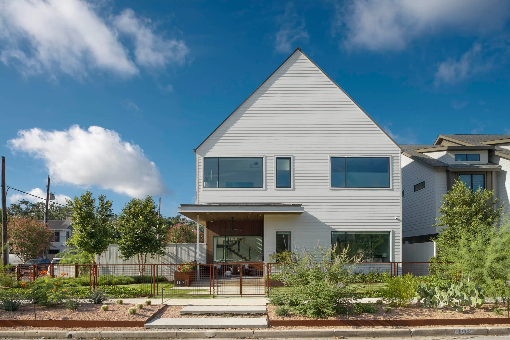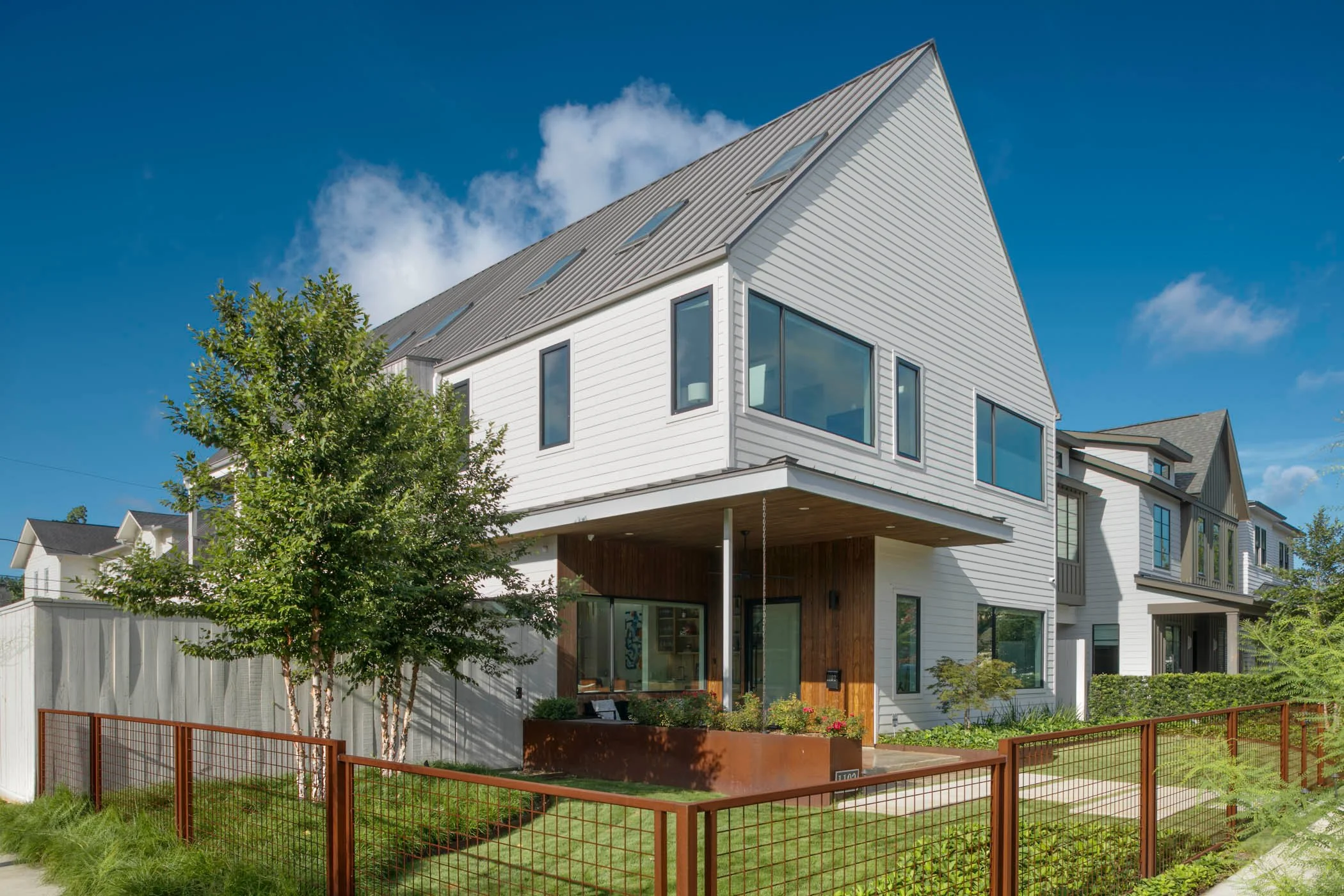 This home was designed for an individual with a large extended family. Located on a prominent 65' x 117' corner lot in Houston’s Woodland Heights, it serves as a visual anchor to the Historic Norhill Esplanade and engages directly with the surrounding neighborhood. The design draws from the vernacular gabled forms of the Heights and the client’s appreciation for Scandinavian architecture - simple, functional, and light-filled. The material palette reflects this restraint: smooth horizontal cementitious siding ties to neighboring homes, while vertical Kebony wood and standing seam metal roofing add warmth and contrast.